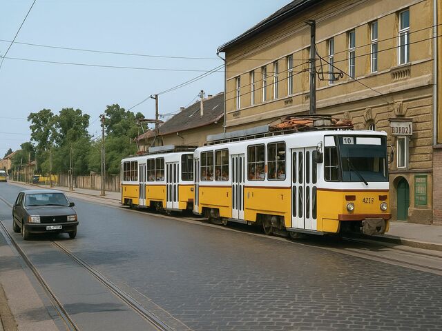 Tátrás ikerszerelvény a 10-es viszonylaton a Külső Váci úton, 1984-ben.