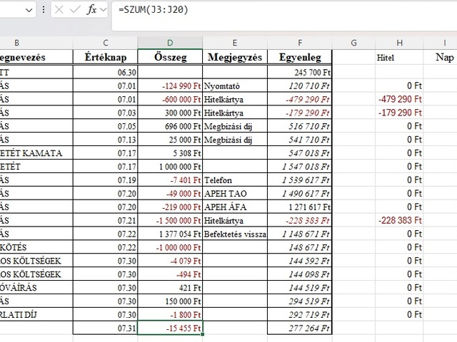 Eredmények- Veszteségek a két oldalon